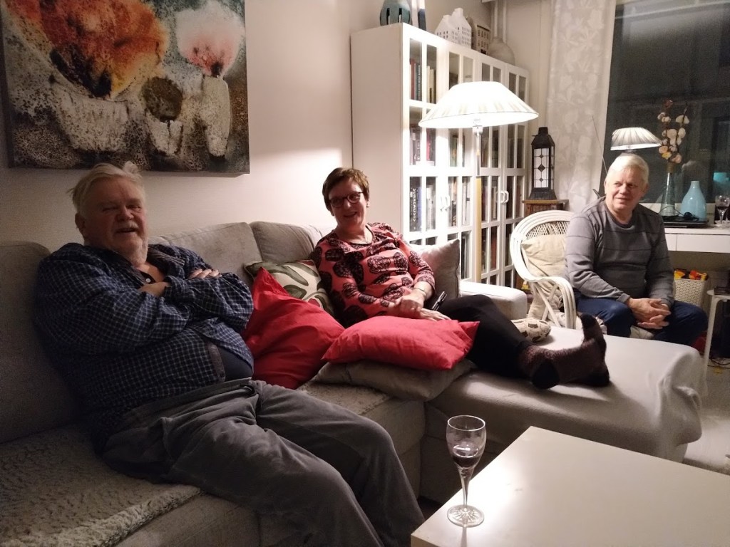 Saimme viikonloppuna harvinaisia vieraita. Jussin Esko-veli ja Arja poikkesivat. Veimme heidät nepalilaiseen ravintolaan syömään. Ilta vierähti kotosalla rupattelun ja punaviinin merkeissä. Arki alkaa maanantaina. Olen varannut meille proteiinipitoista dieettiruokaa. Nyt kun vähän irrottelimme, tuleva ponnistus tuntuu hyvältä ajatukselta.