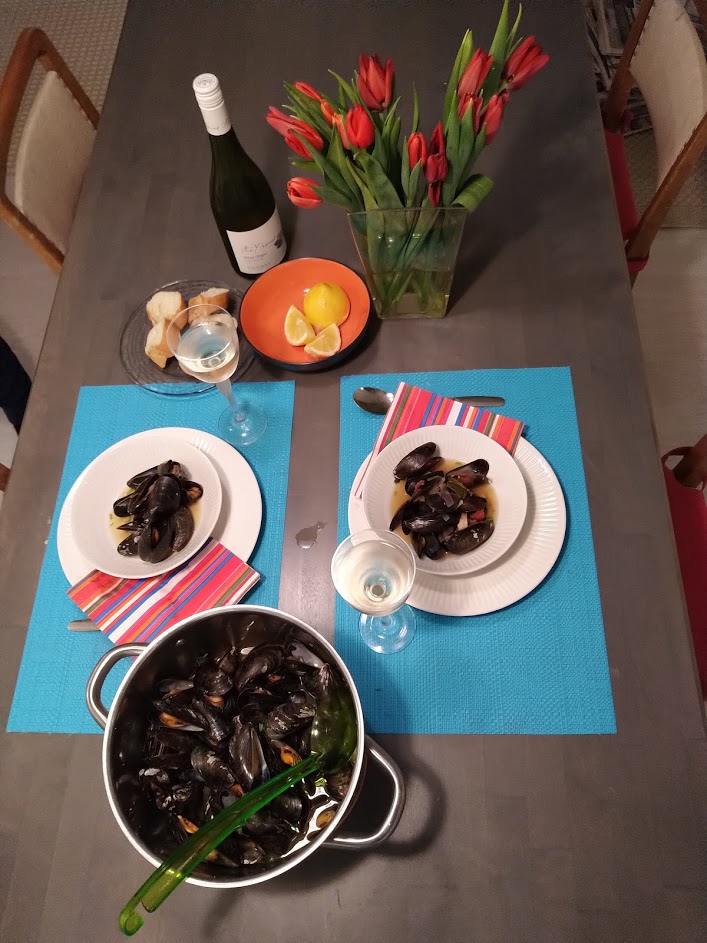 Illalla meillä on tiedossa herkkuhetki. Jussi kävi eilen Goodmanilla reppu selässä. Ostoslistalla oli pussillinen sinisimpukoita ja pullo hyvää valkoviiniä. Ei meillä ole mitään erityistä syytä juhlaan jos ei vapaata viikonloppua katsota sellaiseksi. Simpukoista vaan on ollut paljon puhetta. Emme tarjoa niitä vieraille, sillä kaikki eivät ole niiden ystäviä. Me olemme.