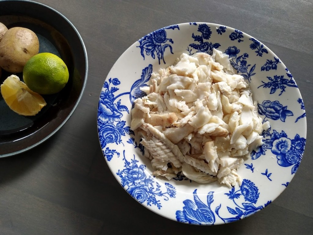 Siivilöin liemen ja käytin sen valkokastikkeeseen. Perkasin kypsän kalan ja lisäsin palat kastikkeeseen.