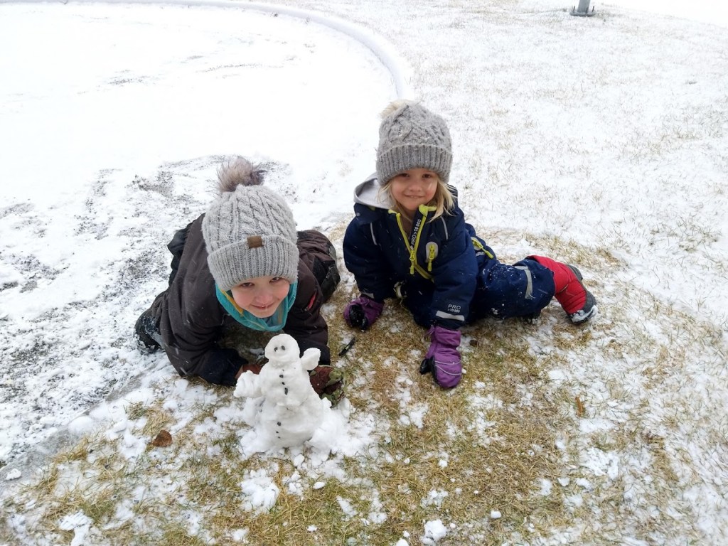 Lähtötunnelmissa. Laukut on pakattu ja ilmassa on jännitystä. Saimme yllättäen lumisateen ja talven tuntua.