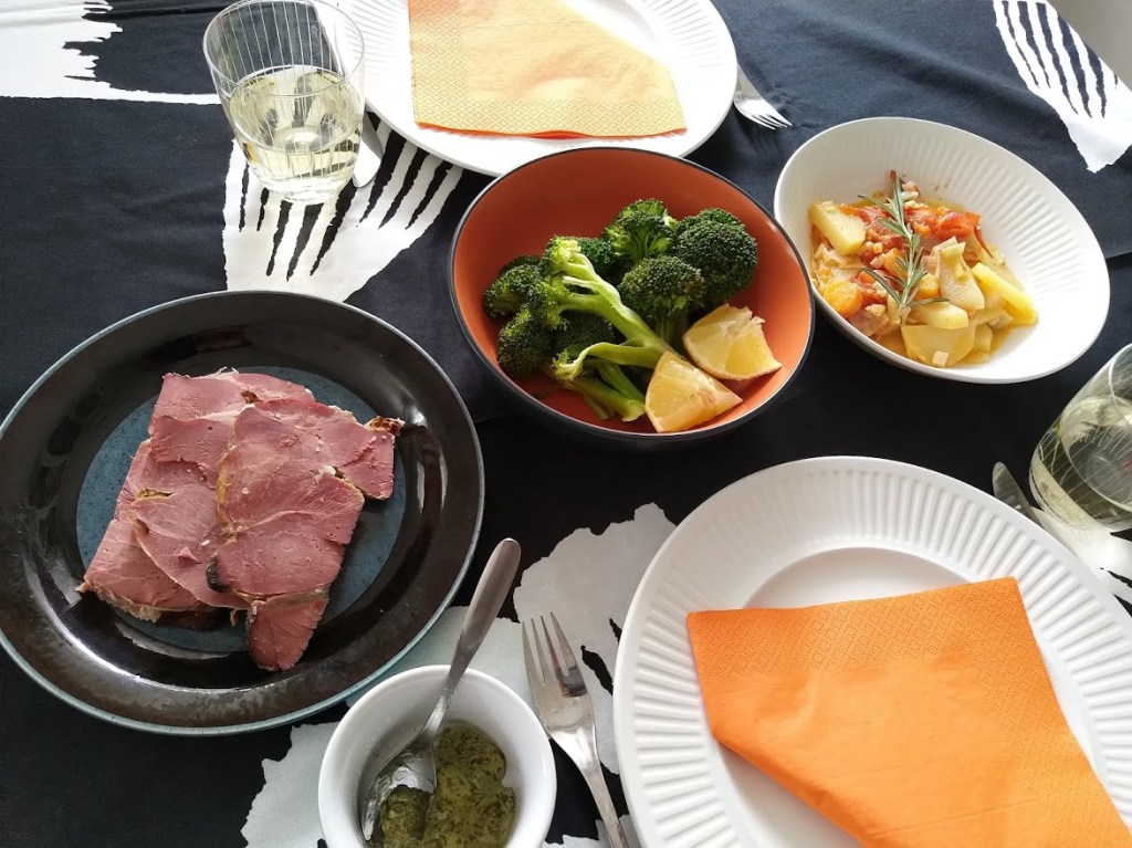 Pitkäperjantaina herkuttelimme kylmäsavulampaalla. Tai oikeammin Jussi herkutteli Minä vierastan edelleen liharuokia mutta suostuin maistamaan.