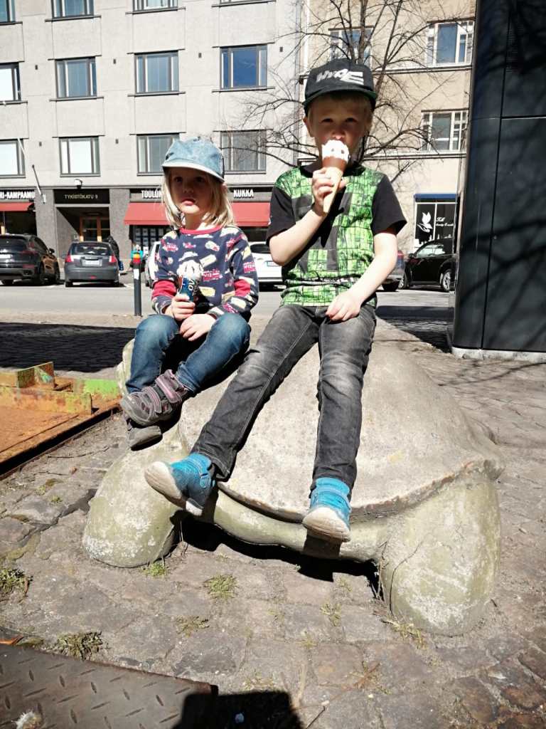 Anna lähetti kuvan pojista Töölöntorilla. Näytti kesältä.