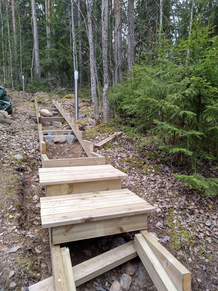 Säätiedotus lupasi lauantaiksi sadetta. Onneksi se alkoi vasta illan edellä. Meillä oli ansiokas työpäivä mökillä.