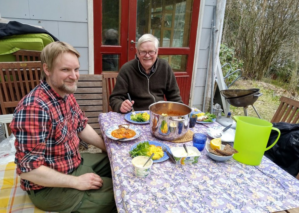 Voi sitä vappua näinkin viettää. Soittelimme eilen ystäville. Kaikilla oli tiedossa etävappu. Nautimme kalakeittoillallisen Jussin kanssa kahdestaan. Sitten lauloimme duettoa. Olen printannut vuosien varrella lauluvihkosia. Nyt turvauduimme YouTubeen. Oli tosi hienoa laulaa sekakuorossa yhdessä Georg Otsin, Olavi Virran ja Jaakko Ryhäsen kanssa. Slaavilainen nostalgia sai vanhat muistot pintaan.