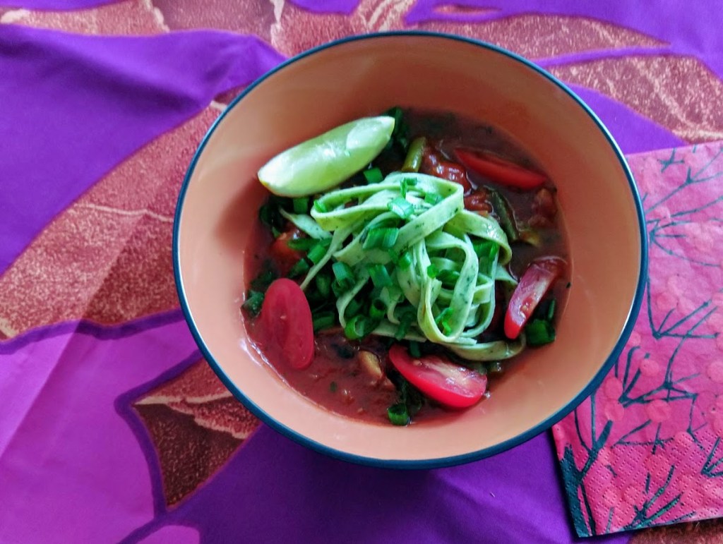 Keitin pinaattituorepastaa ja yhdistin ainekset. Mieto pasta ja kirpeä kastike sopivat hyvin yhteen.
