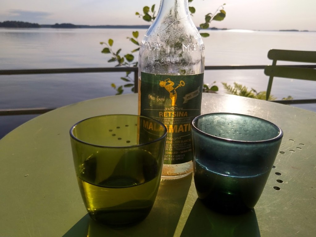 Tarjosin rantakeinulla yllätysjuomaksi retsinaa kreikkakaipuun lievitykseksi.