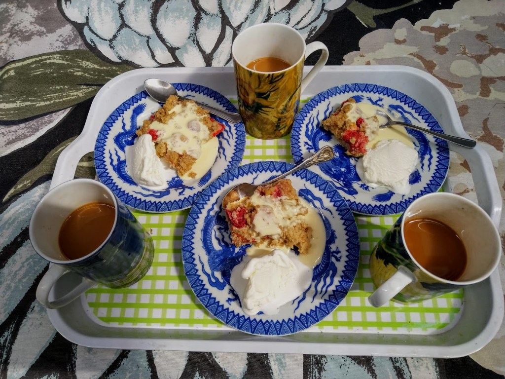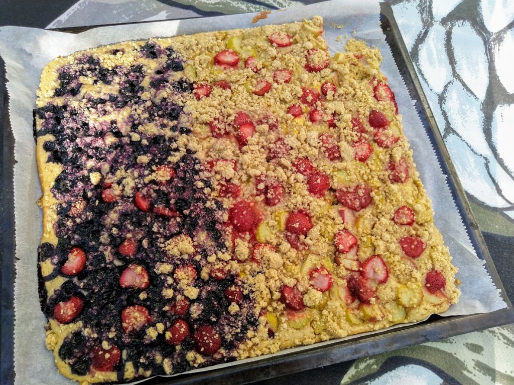 Herkuttelimme mansikka-mustikka-raparperipiirakalla. Hyvältä maistui.