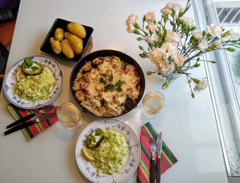 Tarjoilin Annabella-perunoiden, varhaiskaaliraasteen, avocadojen ja kuivan valkoviinin kera. Maistui.