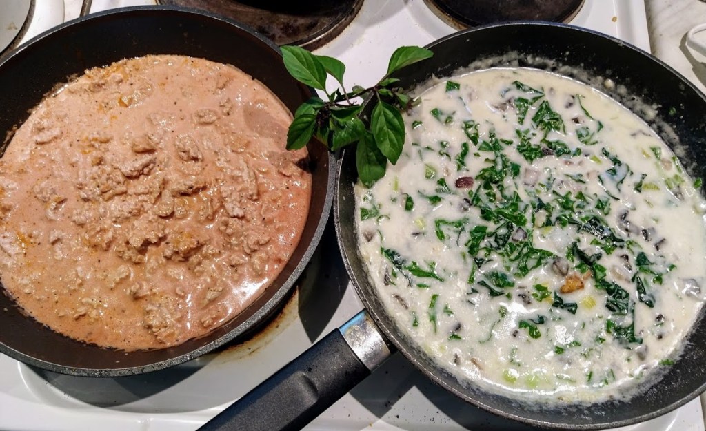 Kuullotin paloitellut sienet ja tuoretta sipulia pannulla voissa. Lisäsin pari ruokalusikallista vehnäjauhoja ja purkillisen kuohukermaa. Sekoitin tasaiseksi ja lisäsin joukkoon pieniksi saksitut lehtikaalit.
