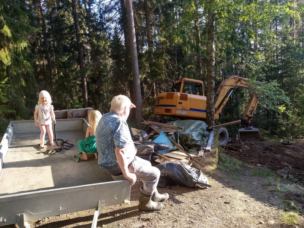 Kaivurimestari Arto tuli paikalle ja nyt homma on korjattu. Henkäisin helpotuksesta. Kymmenen henkeä ja toimimaton wc kuulosti katastrofilta.