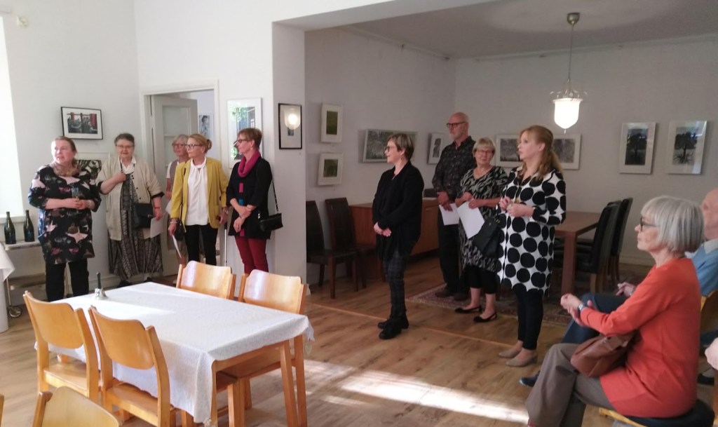 Villa Armas on viehättävä funkisrakennus Pikonlinnassa. Jännitimme, tuleeko kukaan näin korona-aikana avajaisiin. Olimme ripustaneet viiden hengen joukkueella edellisenä päivänä 71 grafiikanvedosta galleriatilaan. Urakka oli melkoinen, sillä huoneet olivat korkeita ja ripustussysteemi vaikea.