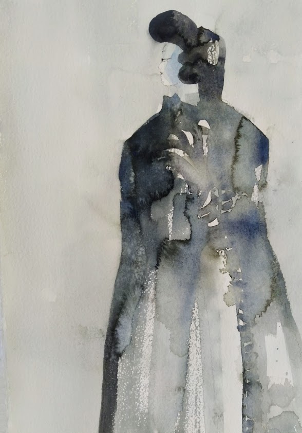 Toin syksyn myötä akvarellitarvikkeet mökiltä kaupunkiin. Olen ollut muutaman päivän yksin kotona. Käytin tilaisuutta hyväksi ja levittäydyin ruokapöydän ääreen.