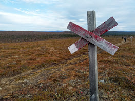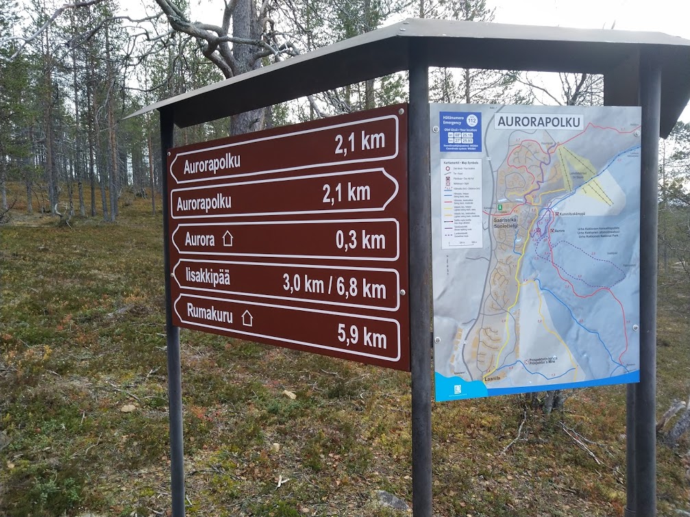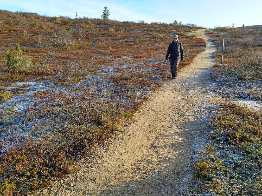 Me muut kirmasimme auringonpaisteessa tunturiin. Iisakkipään rinteelle oli valmistunut Aurorapolku sitten edellisen käynnin.