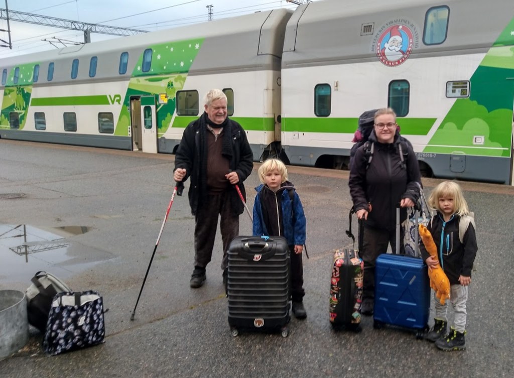 Golden Linen bussi otti meidät kyytiin Tunturihotellin pysäkiltä. Yöjuna Rovaniemeltä Helsinkiin oli uskomattoman pitkä. Meillä oli vierekkäiset makuuhytit.