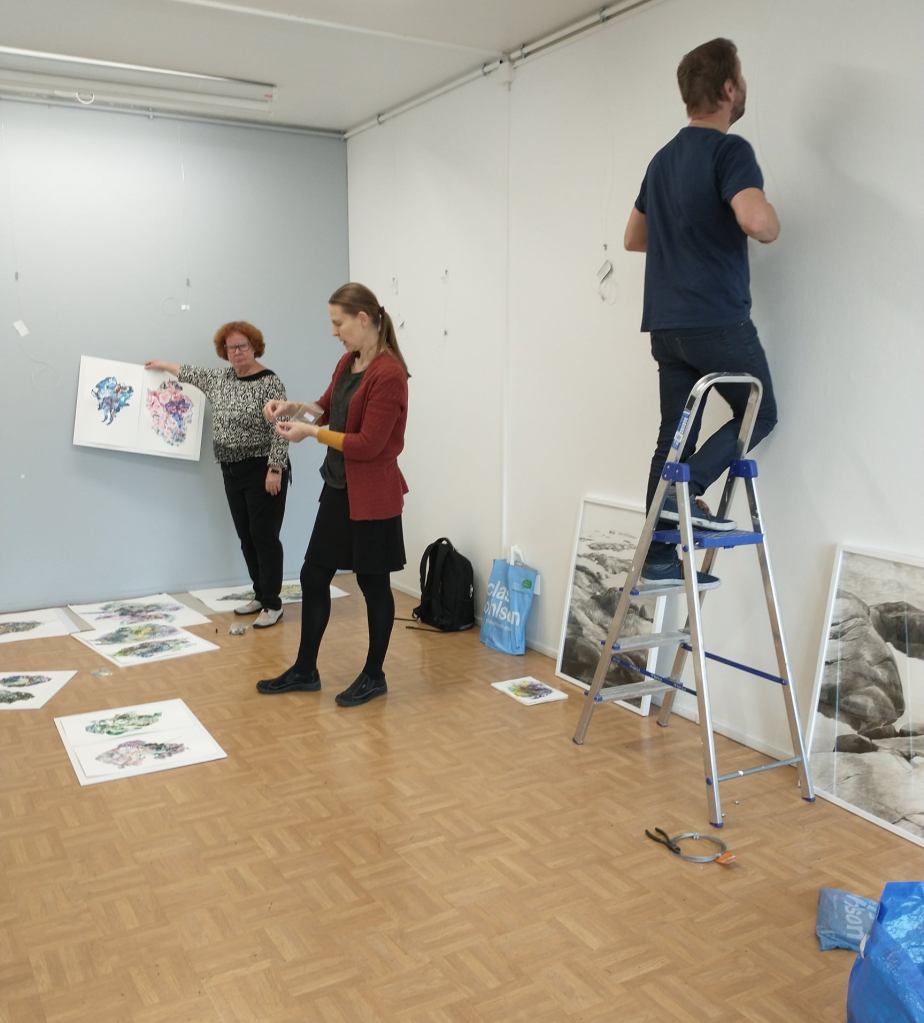 Olin eilen apuna, kun opiskelijatoveri Tuire ripusti Galleria Paperihuoneelle lokakuun näyttelyn. Odotan jo kovasti marraskuuta, jolloin on Paulan ja minun vuoroni. Kangasalan näyttely loppuu tänään. Lähes kaikki työt palautuvat työhuoneelleni. Siellä on jatkuva pop up näyttely.