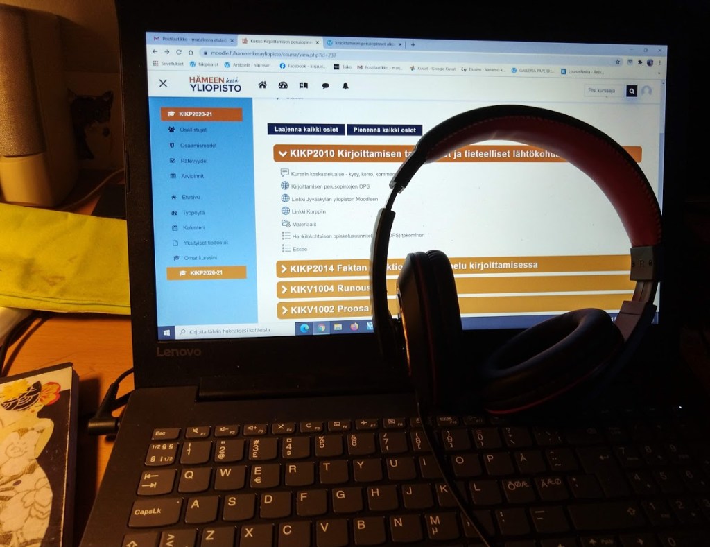 Viikonloppu vierähti sujuvasti läppärin ääressä. Kirjoittamisen perusopinnot alkoivat etänä. Se toimi yllättävän hyvin.