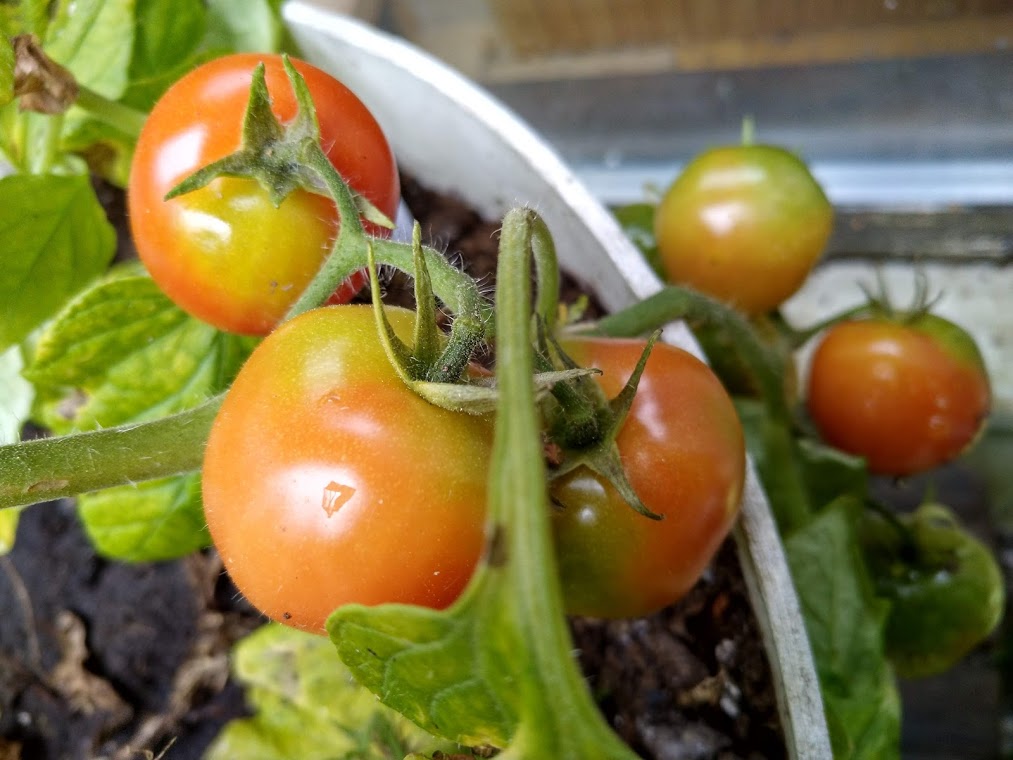 ”Tule katsomaan, miten terhakoita tomaatin alkuja, ovat vielä vihreitä, mutta ensimmäisissä näkyy jo punerrusta”, naapuri kohottautuu ja nostaa leveälieristä olkihattua. Hän on pukeutunut sinisiin haalareihin ja jalassa on tukevat kumiteräsaappaat.