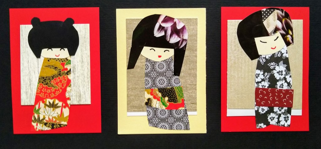 Koska rakastan kollaasien tekoa, keksin että voin laittaa esille myös aiheeseen sopivia postikortteja ainakin ikkunalaudalle. Niiden tekeminen on ollut ilo. Kotoa löytyy materiaalia, hamsteri kun olen.