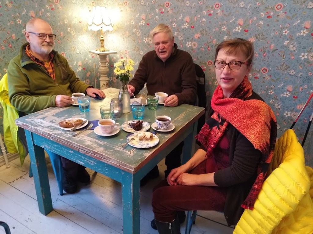 Iltapäivällä meillä oli ilo tavata pitkästä aikaa ystävämme Terttu ja Immo. Kävimme leivoskahvilla kahvila Marengissa Eteläkadulla. Terttu oli varannut meille viehättävän perähuoneen.