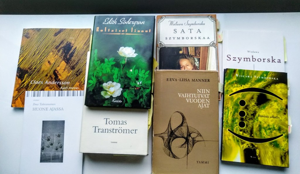 En olisi uskonut, että luen vapaaehtoisesti runoja oikein urakalla. Tähän asti valikoimassa on ollut romaaneja, dekkareita, taide- ja keittokirjoja. Sysäys tähän runojuttuun tuli kesäkursseilta tutulta opettaja Niina Hakalahdelta. Hän vetää joulukuussa seuraavan etäopetusjakson kirjoittamisen perusopinnoissa.