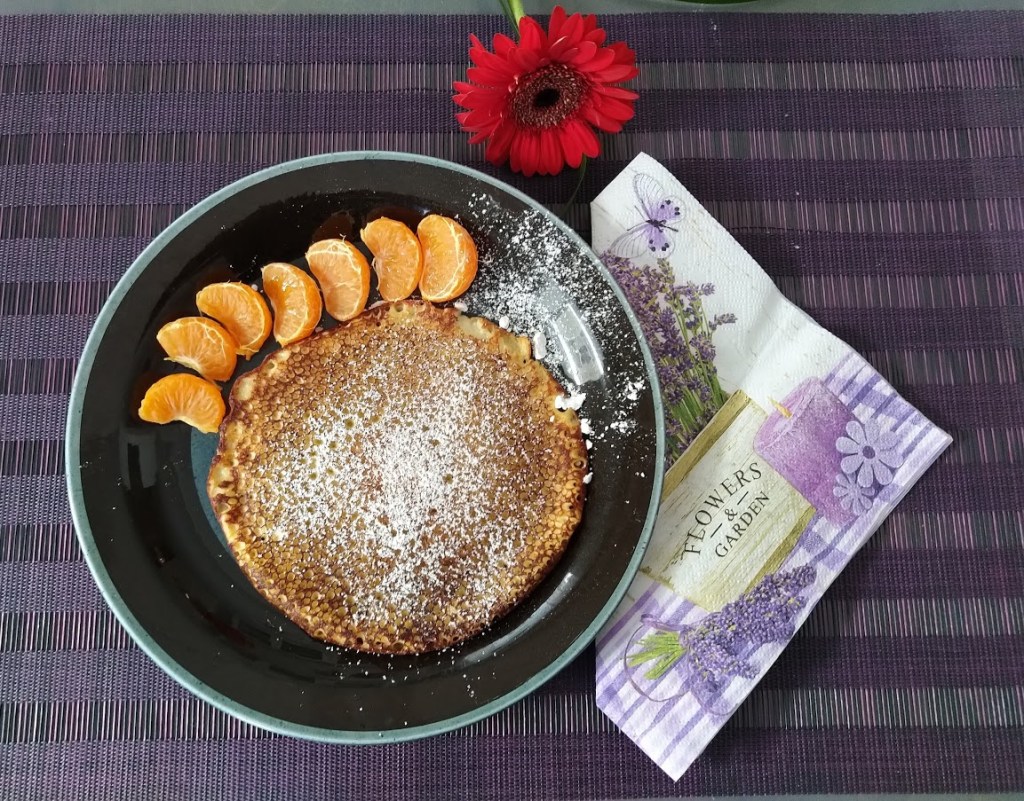 Paistoin letut normaaliin tapaan ja tarjosin kuumina suoraan pannulta. Tomusokeri ja mandariinin lohkot toivat mukavaa makeutta.