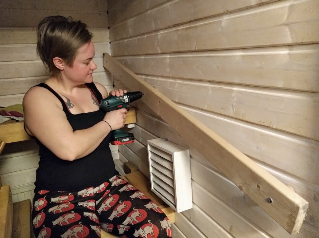 Viikonlopun paras juttu pikkupoikien mielestä oli mummin spagetti ja bliniletut. Jussin mielestä paras juttu oli tukikaide saunaan. Kiitokset siitä nikkari Annalle.