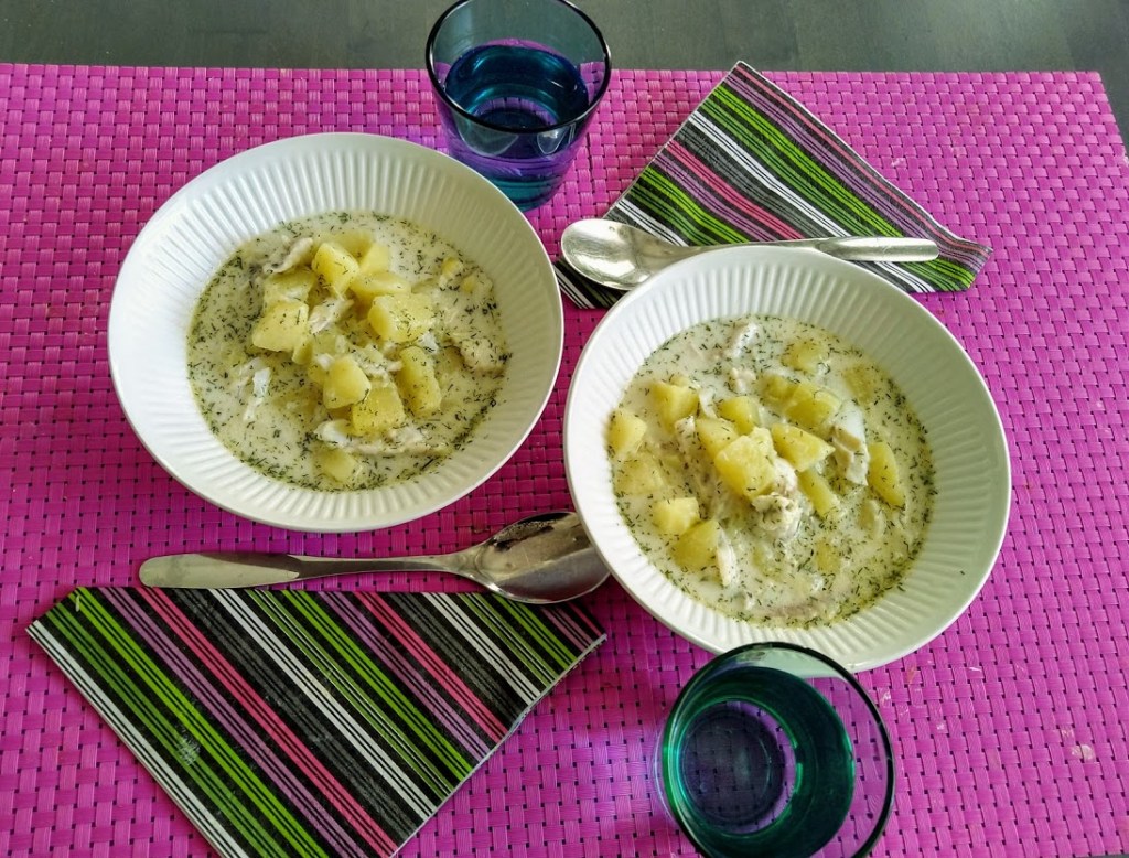 Ohje on yksinkertainen. Keitin lohkottuja perunoita, purjoa ja keltasipulia kalaliemessä. Lisäsin mateen kokonaisena. Kun se oli kypsä, poistin ruodot ja selkärangan. Laiton kalapalat liemeen ja viimeistelin keiton maidolla, tillillä ja voinokareella. Maku oli erinomainen.