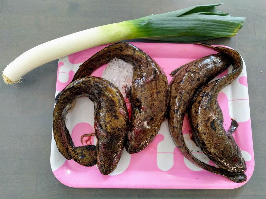 Ystävämme Immo toi tuliaisiksi vastapyytämiään mateita. Jussi kääri hihat ja nylki ne oikeaoppisesti. Kokkasin suurimmasta makoisan keiton.