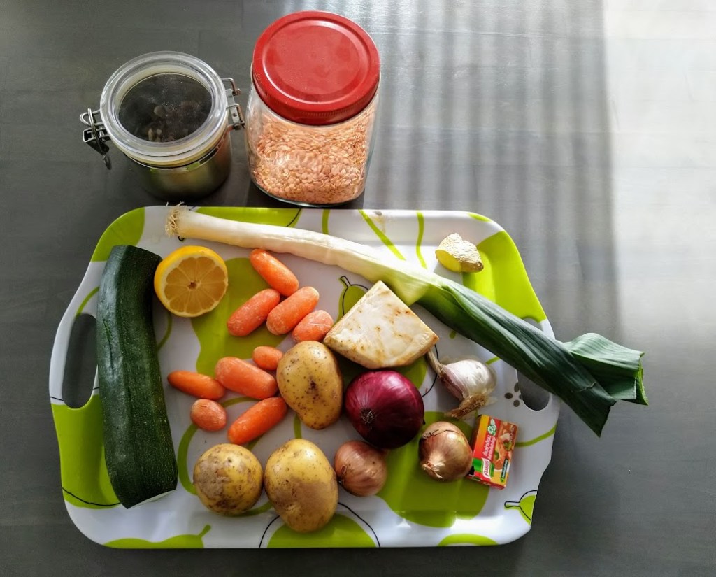 Olen kuivattanut itse ja saanut tuliaiseksi sieniä. Ne ovat jo vuosikertaa. Liotin kourallisen suppilovahveroita. Pilkoin kuvassa näkyvät kasvikset ja kiehautin ne ja sienet tom yam liemessä. Lisäsin lopuksi huuhdotut linssit ja annoin kypsyä noin 15 minuuttia.