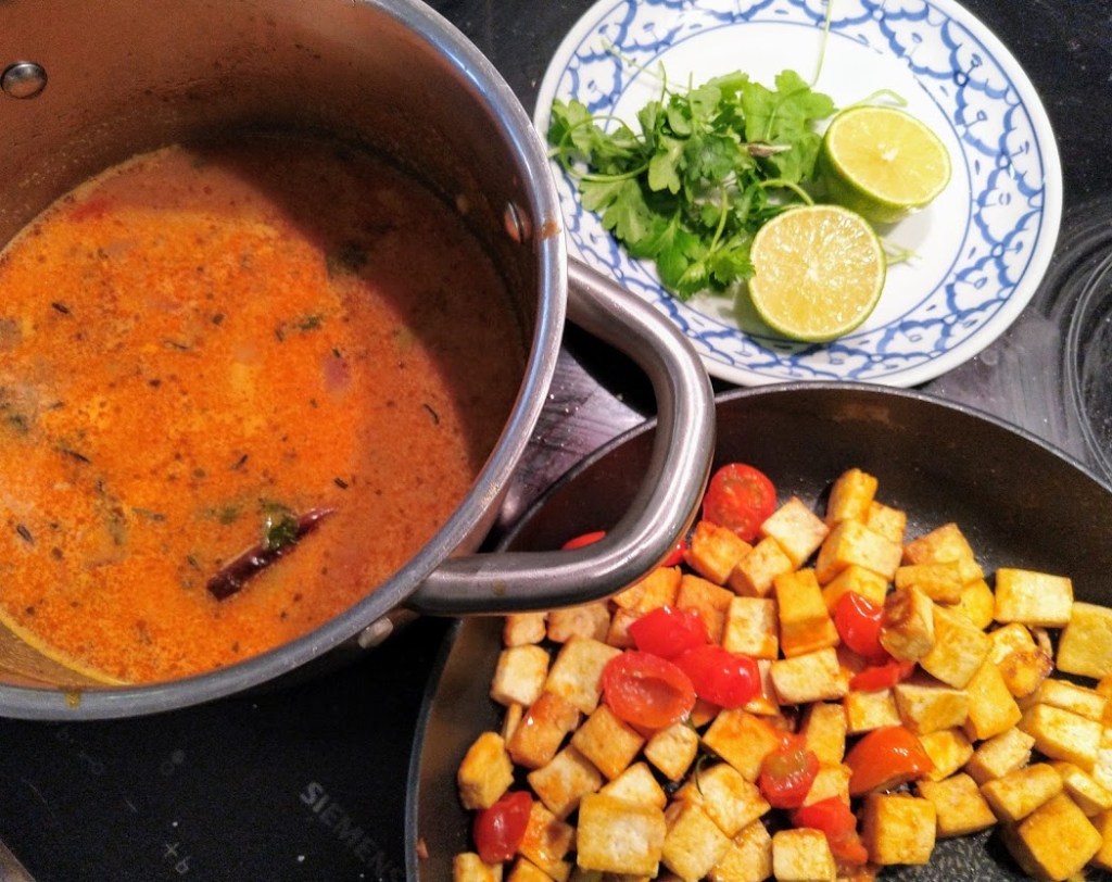 Aloitin tofu-kasviskeitolla. Seurasin ohjetta, vaikka mieli teki soveltaa. Mielestäni suurin puute oli, ettei pakkauksessa ollut tuoretta chiliä eikä korianteria.