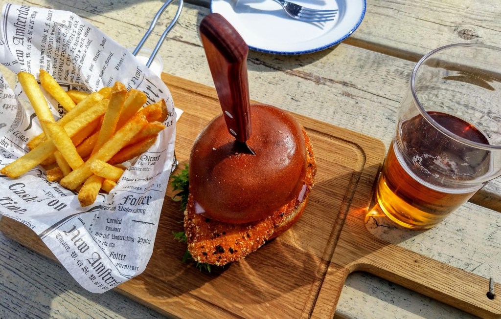 Viihdyimme niin hyvin, että tilasimme vielä oluet ja hampurilaisen:) Laitoin kuvan perheen WhatsApp ryhmään. Sain peukunkuvia ja kommentin: Epistä.