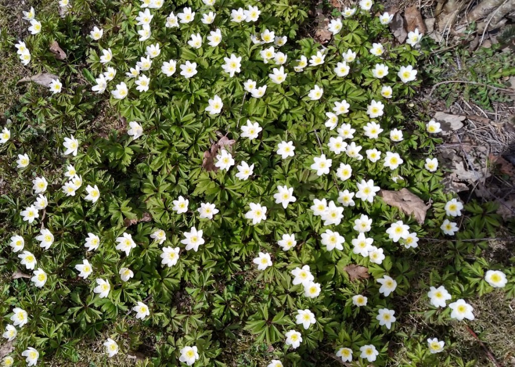 Myös valkovuokot olivat heränneet. Kevät etenee nyt vauhdilla, paitsi että loppuviikoksi on luvassa pakkasöitä ja päivisin sadetta.