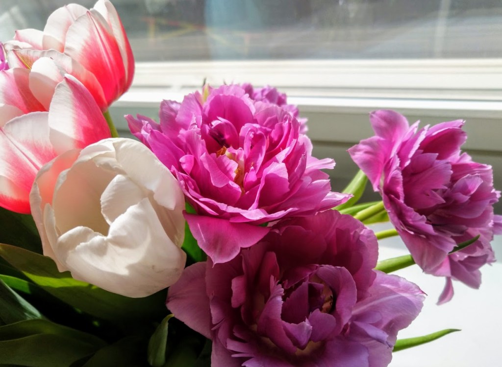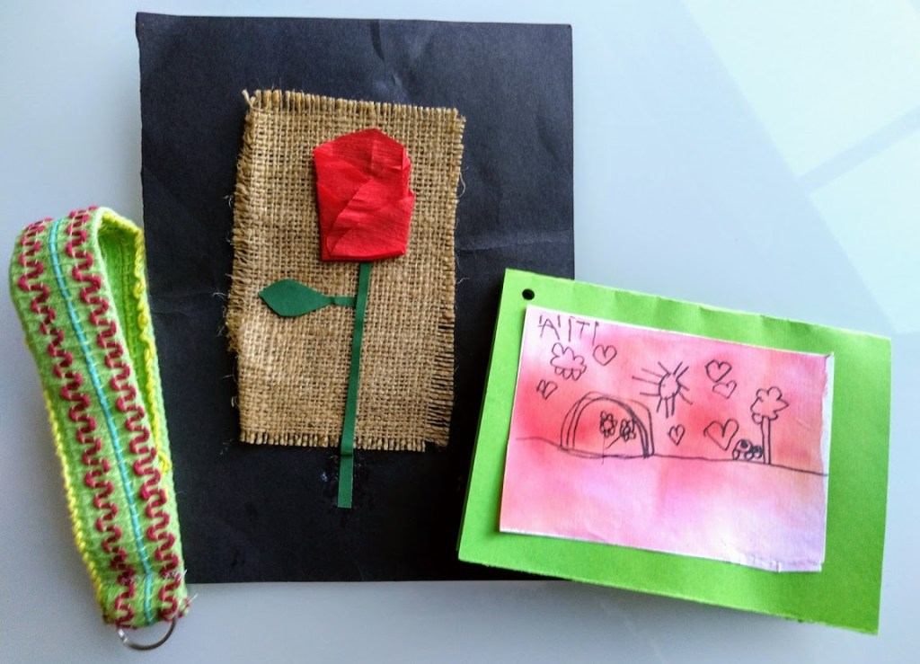 Sunnuntaina pojat toivat meille molemmille lahjoja. Myös Miikan perhe muisti äitienpäivää kortilla ja kukkaistervehdyksellä. Mummi kiittää.