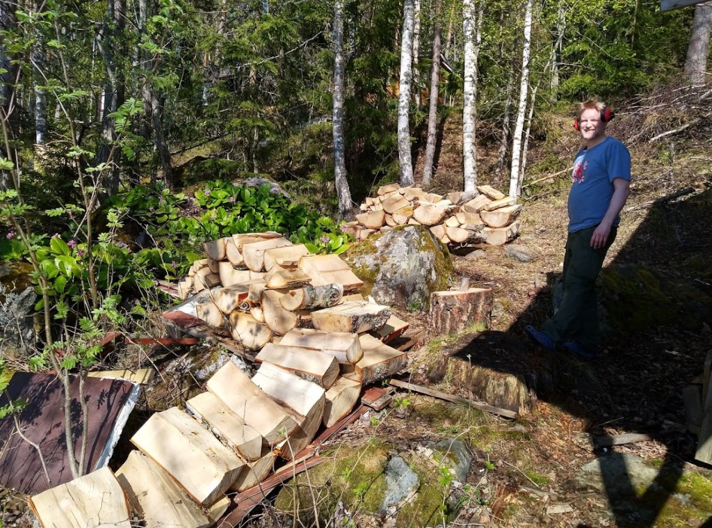Miika hakkasi talvella kaadetuista puista halkoja, Anna ja Laura tyhjensivät romueteistä ja minä istutin kesäkukkia.