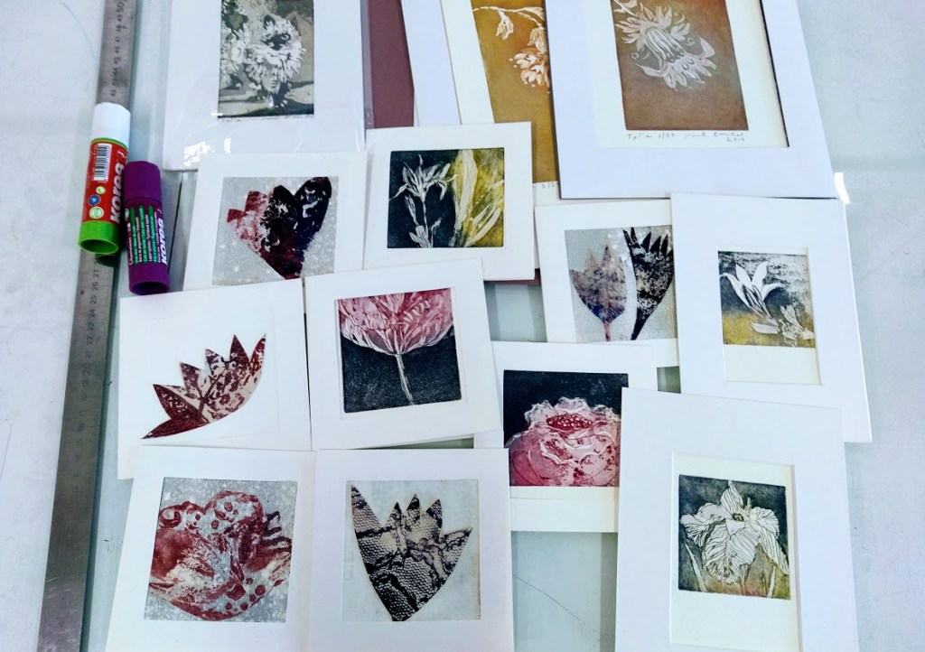 Päivä oli todella hiljainen. Vain omaa väkeä kävi. Rankat sadekuurot kastelivat pariin otteeseen kaupungin. Minä askartelin kukkavedoksista kortteja ja pieniä tauluja paspojen kera. Ne sopivat persoonallisiksi onnitteluiksi vaikkapa kevään ylioppilaille. Ajankohtaiset tiedot löytyvät linkistä Paperihuone.com.