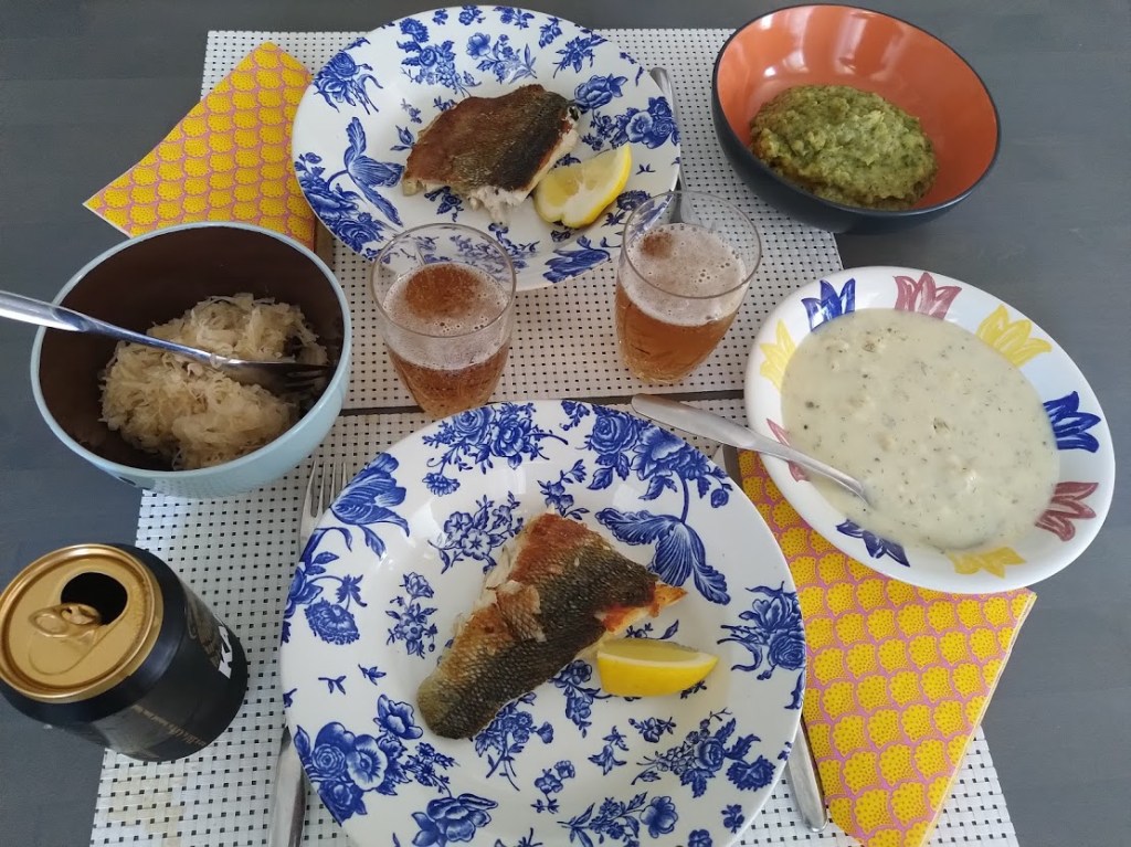 Olen lisännyt kaupunkikodissakin annoksiin vihreää. Tarjosin kuhafileiden seuraksi pinaattiperunamuhennosta sekä mozzarellasalaattia. Rapea pikkusalaatti ja makeat kirsikkatomaatit sopivat hyvin yhteen. Myös hapankaali sopi seuraan.
