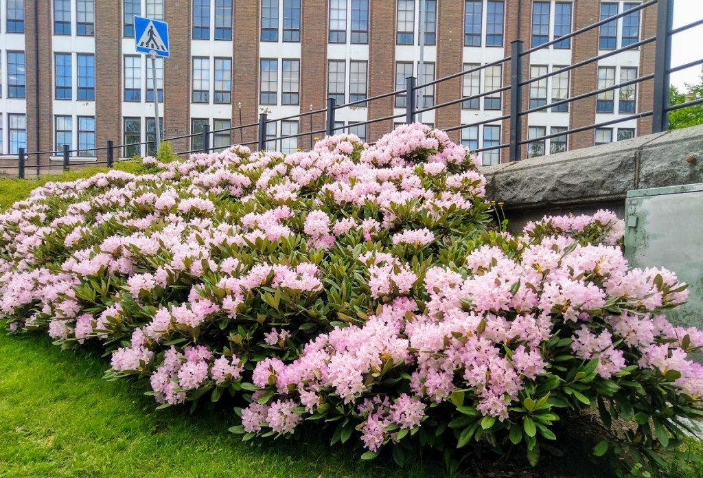 Paluumatkalla ihailimme sillan kupeessa hehkuvia alppiruusuja. Kyllä kaupunkikesässäkin on puolensa.