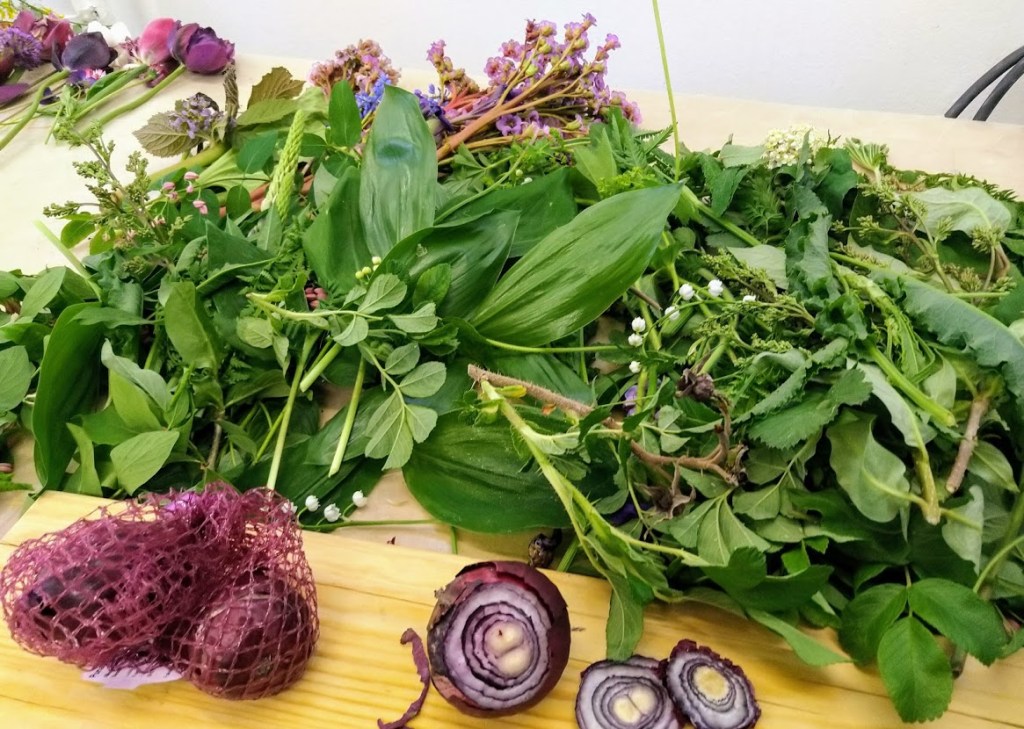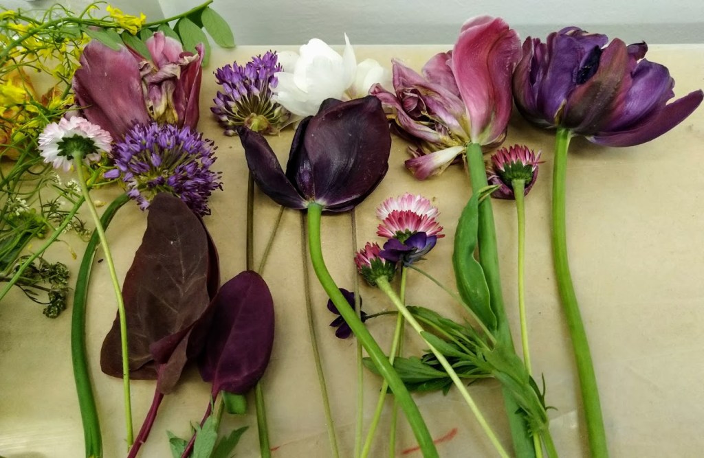 Hämeen Taideartteli järjesti Elina Vänttisen johdolla keväisen kontaktivärjäyskurssin. Jokainen sai tuoda lempikasvejaan ja kurssipaikalta löytyi lisää.