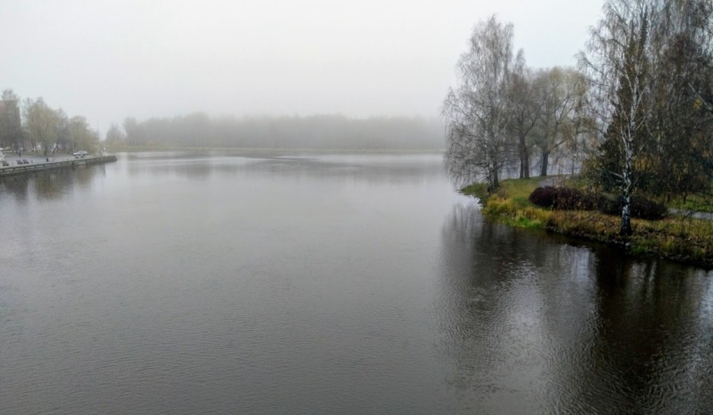 Olin eilen jo varhain lenkillä. Järven yllä oli melkoinen sumu.