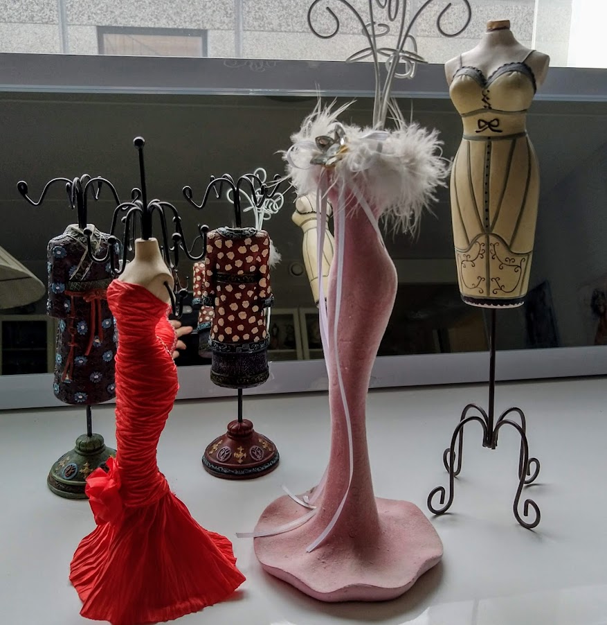 – Voi veikkoset teitä. Sinä punamekkoinen, ravistan hameesi parvekkeella. Entä sinä hienohelma. Pukusi on niin pölyinen, että saat suihkeen Eucaa ja kunnon pesun. No niin, nyt näyttää paremmalta. Olette niin suloisia, että taidan laittaa teidät lasivitriiniin. Ei tarvitse pölyttää jatkuvasti.