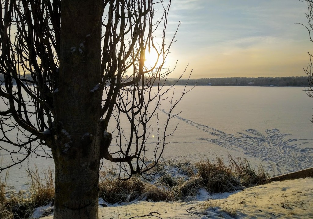 Eilen mittarissa oli -18 astetta, tänään vähän lauhempaa, mutta pureva tuuli sai posket hehkumaan. Anna ja pojat olivat täällä viikonloppuna. He uskaltautuivat luistelemaan torin laidan kentälle. Odottelimme myös Miikan perhettä, mutta he olivat sen verran sairaita, etteivät rohjenneet tulla. Anna ja minä urakoimme nyt koko viikon uunilohta, jota olimme varanneet yhdeksälle hengelle.