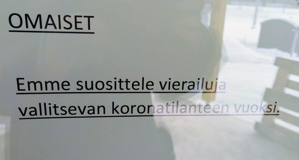 Koronatilanne jatkuu pahempana kuin koskaan. Yliviivaan kalenterista viime vuoden malliin sovittuja menoja. Uimahalli on kiinni, Linnan martat peruuttivat kaiken toiminnan tammikuun ajaksi, taidenäyttelyjen avajaisia ei järjestetä VOP:n kurssit ovat tauolla.