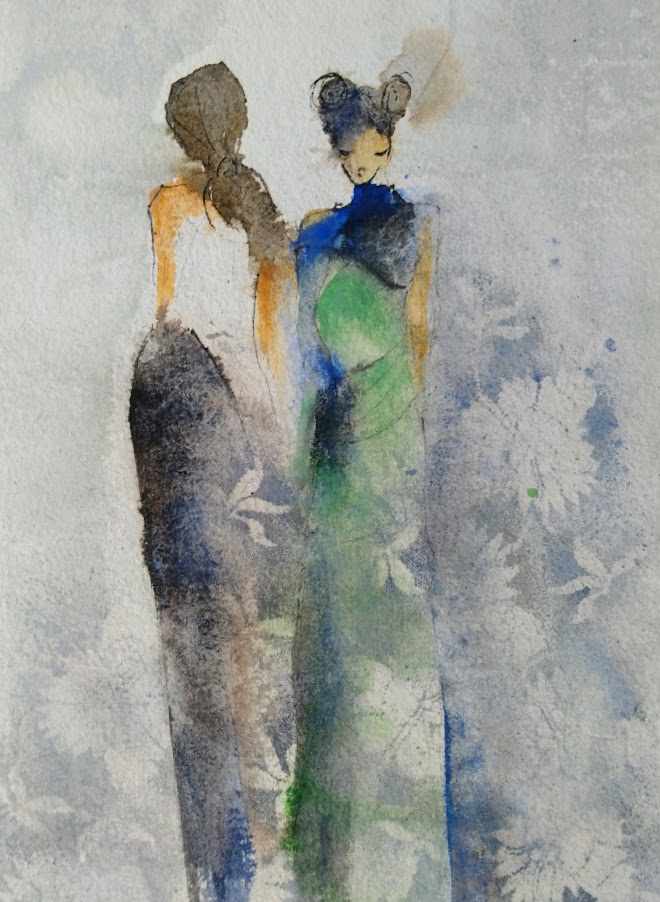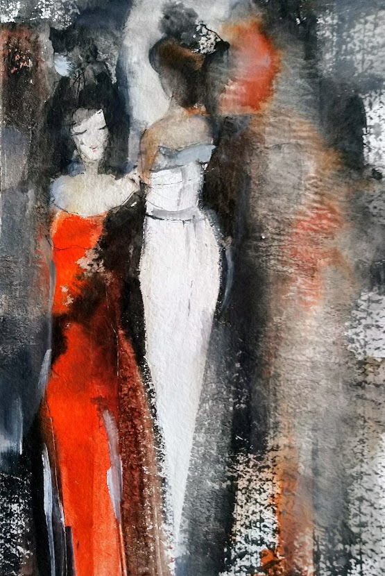 Monet ovat kysyneet, maalaanko nyt perhetragedian aikana tummempia sävyjä kuin aikaisemmin. En myöntänyt, mutta nyt kun katson tämän päivän akvarelleja, tottahan se on.