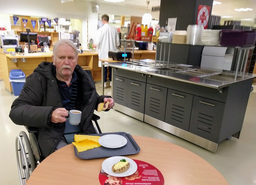 Kesti vain muutaman minuutin, kun auto tuli ja pääsimme sopivasti lounasaikaan takaisin Visarantaan. Ruokalistalla oli kaalikääryleitä. Lääkäri on luvannut soittaa tuloksista ensi viikolla. Sen jälkeen vuorossa on hoitosuunnitelmapalaveri. Hyvä kun asiat edistyvät.