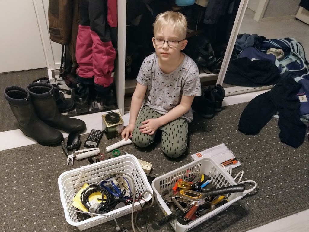 Visa vietti laatuaikaa tutkimalla Jussin romukaappia.