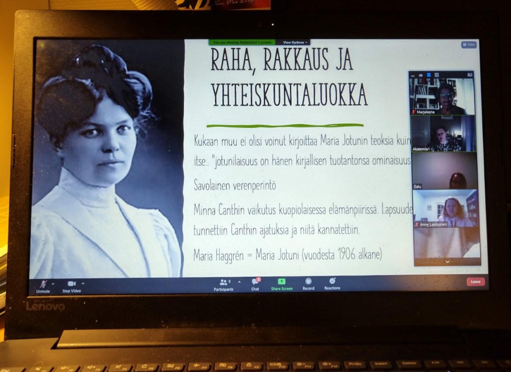 Istuin tiistai-iltana kolme tuntia tietokoneen äärellä. Ilmoittauduin Hämeen kesäyliopiston naiskirjailijoista kertovalle zoom-kurssille.