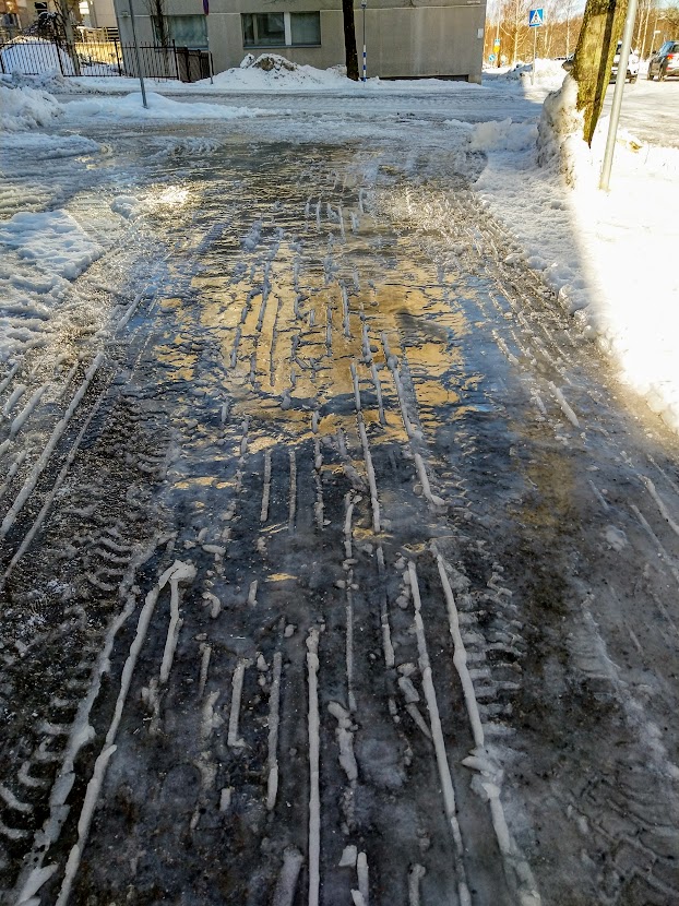 Olin suunnitellut tekeväni pitkän kävelylenkin aurinkoisessa säässä. En tehnyt. Jalkakäytävät olivat jäässä ja vaarallisen liukkaita, vaikka minulla oli piikkikengät. Vatsanahka oli piukeana, kun pääsin takaisin kotiin. Karhu auttoi siihenkin.