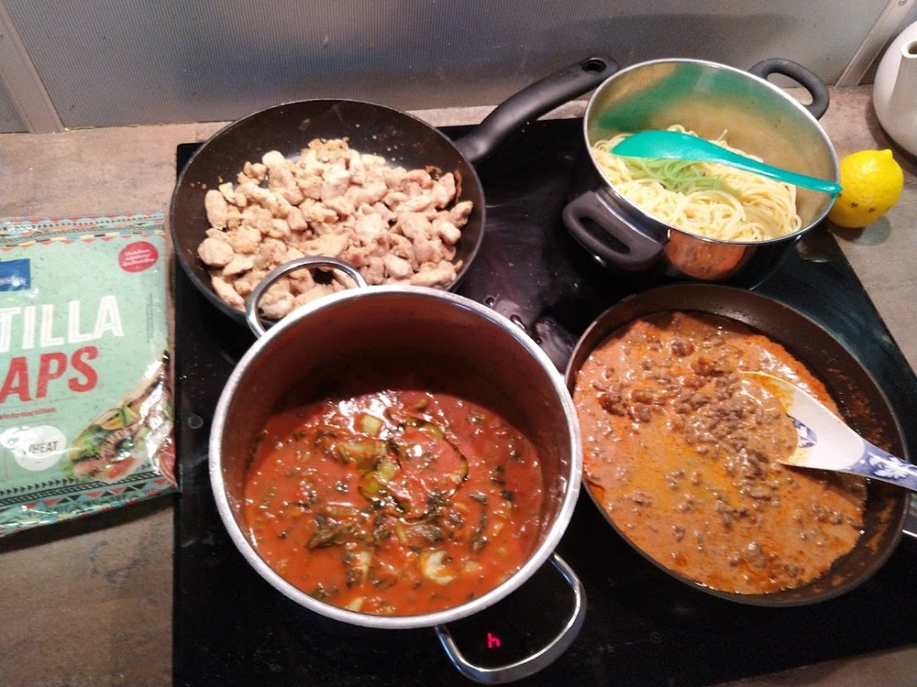 Hiihtolomalaiset tulivat ruoka-aikaan. Mummin keittiössä lähes kaikki kattilat olivat käytössä.