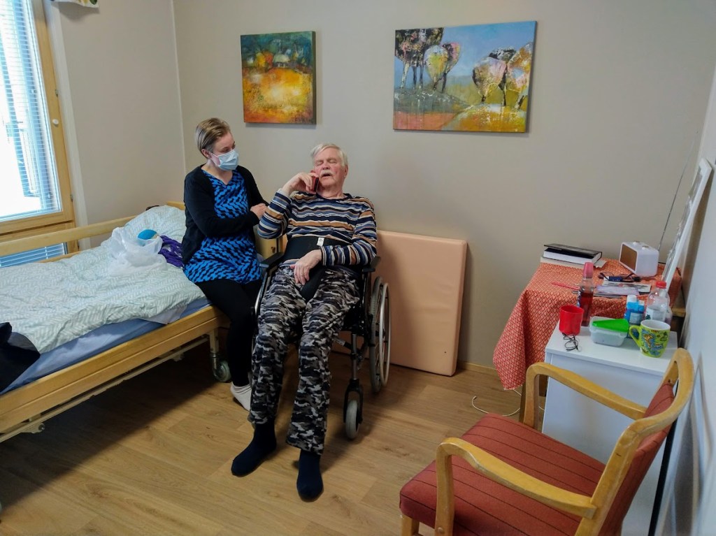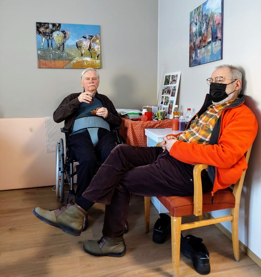 Pojat jäivät Palokunnankadulle, kun Anna ja minä vierailimme Visarannassa. Jussi oli hyvällä tuulella ja jopa niin virkeä, että jaksoi soitella sisaruksilleen. Käynnistä jäi hyvä mieli.