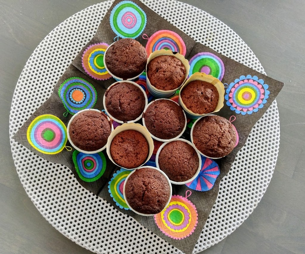 Samu ja Miska halusivat leipoa. Ehdotin, että pyöräytämme puuronlopusta sämpylät, mutta he tyrmäsivät ajatuksen. Niinpä leivoimme makeita suklaamuffineita, jotka onnistuivat erinomaisesti. Pappakin saa huomenna maistiaisia.